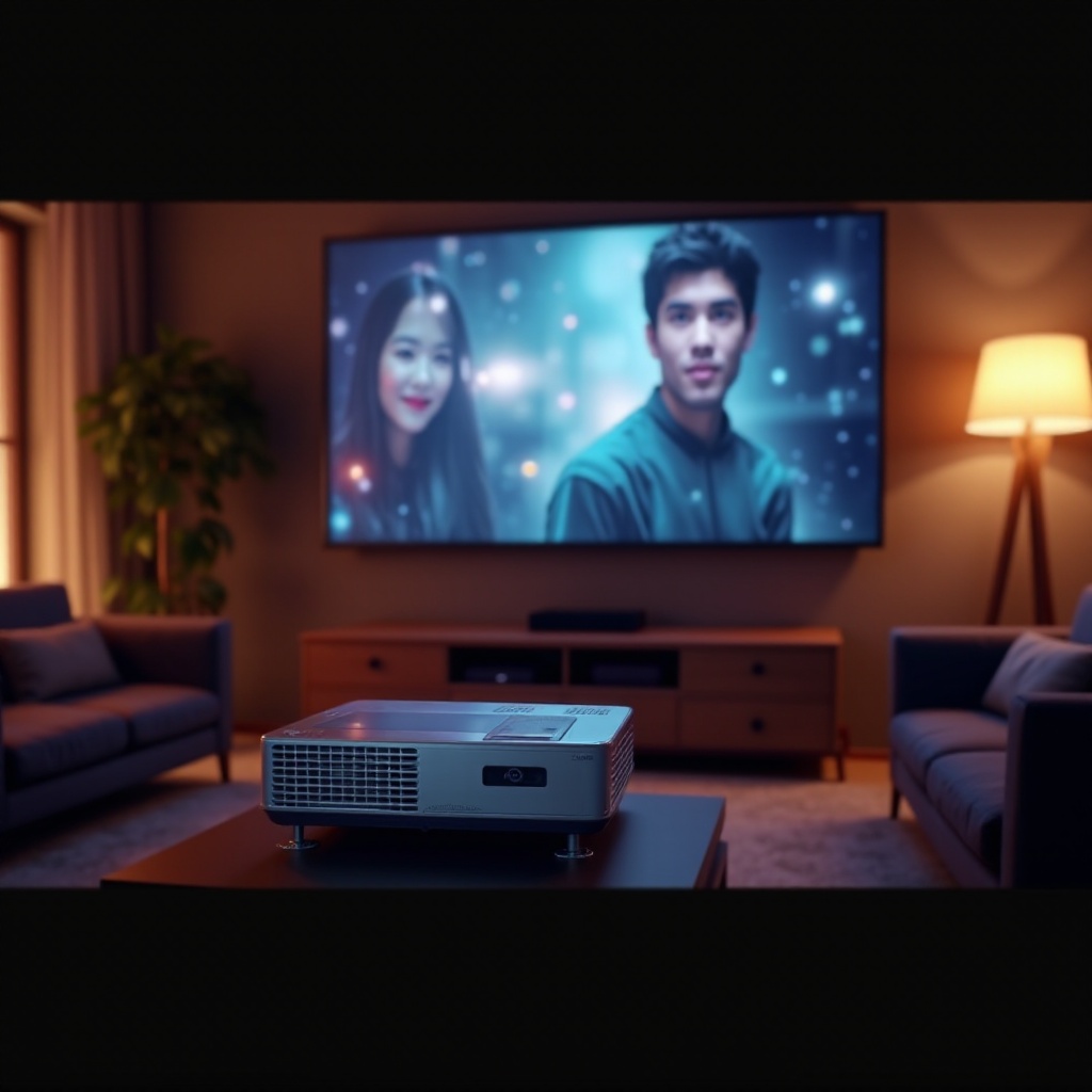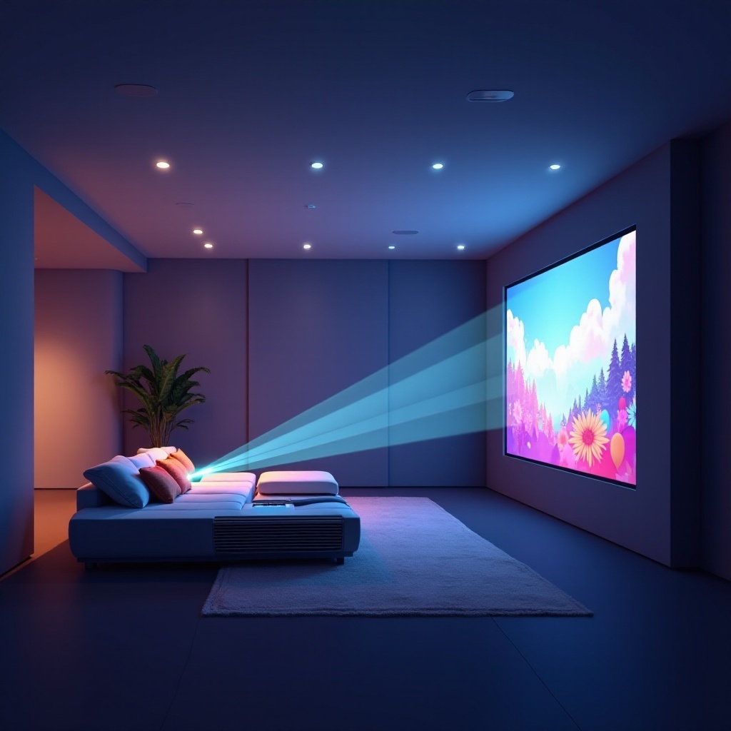 الملحقات الموصى بها للشعور بمسرح منزلي: يمكن أن تعزز الستائر العاتمة جودة الصورة عن طريق تقليل تداخل الضوء، ويمكن لشاشة الإسقاط عالية الجودة ضمان أوضح الصور. سيعزز شريط الصوت أو نظام الصوت الشامل الجو السينمائي بشكل أكبر.