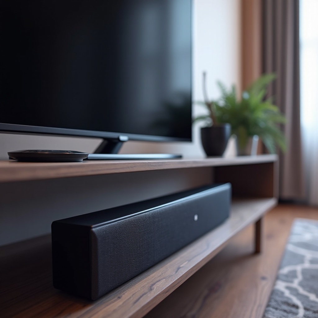 Расположение: Установите звуковую панель ниже или перед телевизором, позволяя звуковым волнам беспрепятственно распространяться. Избегайте размещения в закрытых зонах.