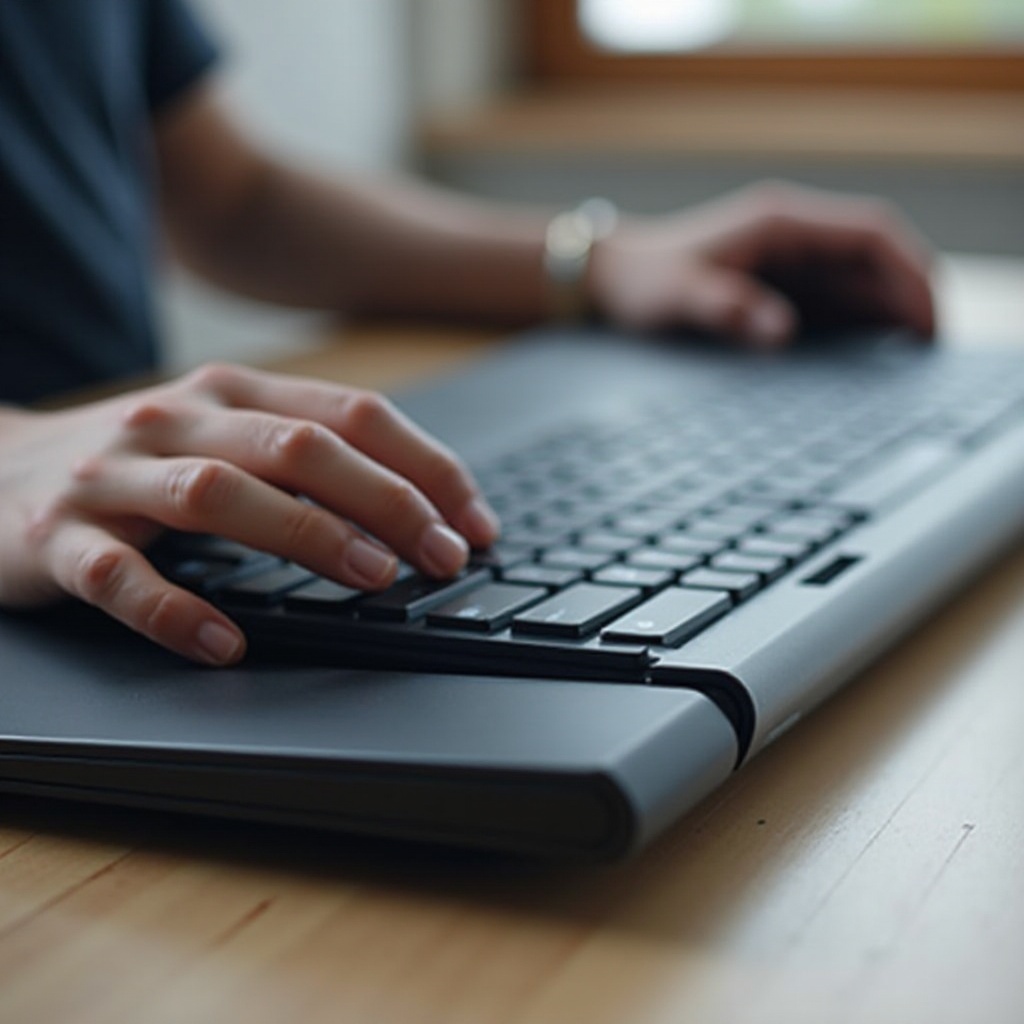 - Расположите половинки клавиатуры так, чтобы они естественно выравнивались с вашими предплечьями.